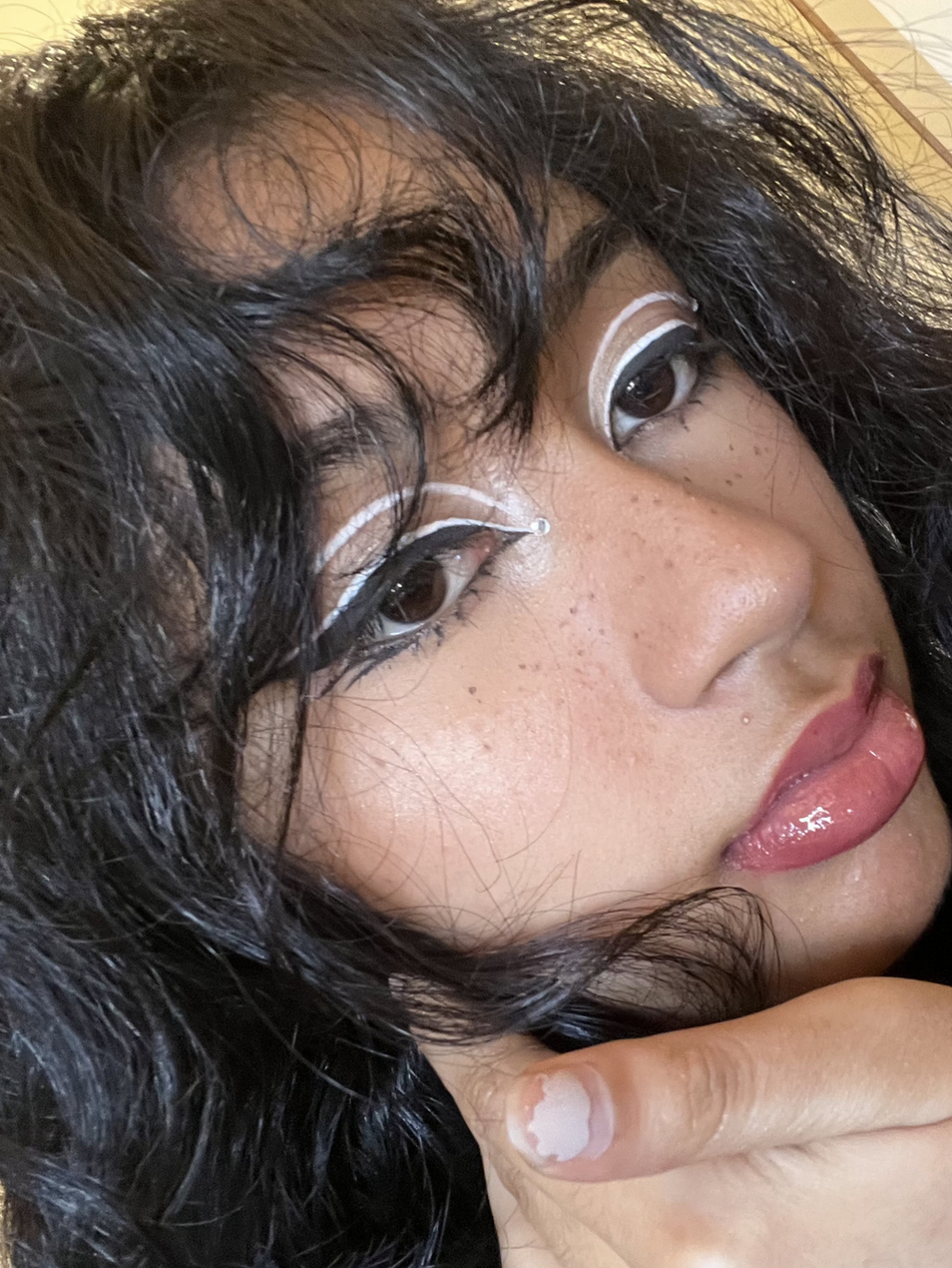 Using Pinterest as a major inspiration, they have created looks ranging from the ‘clean girl aesthetic’ to more bold looks with gemstones and fine-lines. Their favorite products to create these looks include water based liners because they are price-efficient “and easy to work with”, blush, and glitters. When creating a look the main aspects she takes into consideration include skin type and texture, face structure, and outfit vibes. Audrey describes the whole process as a highly collaborative experience between the creative team and makeup artists.